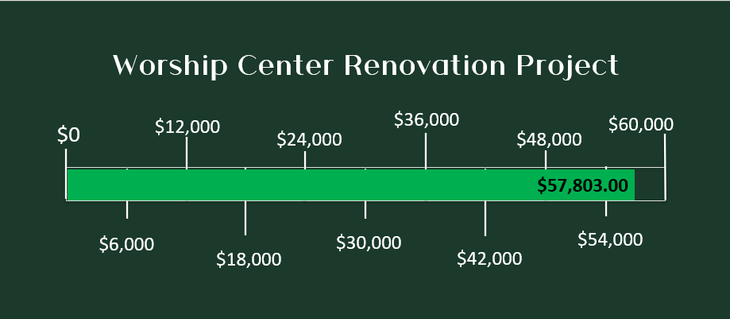 We're so close!! As of November 17th we need just $1,391.00 to completely pay off the cost of our sanctuary renovation. If you can help with that please use the 'GIVE' button above and select Fund 23 or note 'Renovation' on your check.